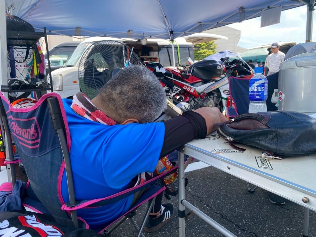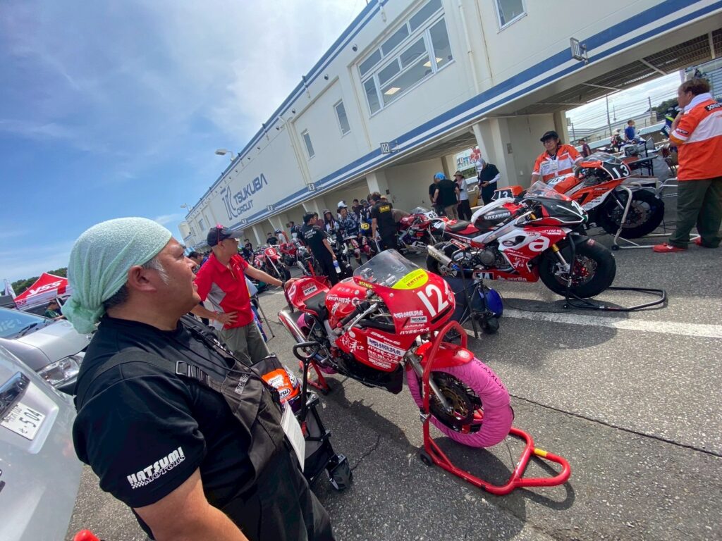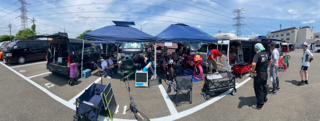 今回は全日本と併催なので私たちはいつもの場所ではなく、筑波サーキット1000の入り口付近の駐車場に陣取ります。