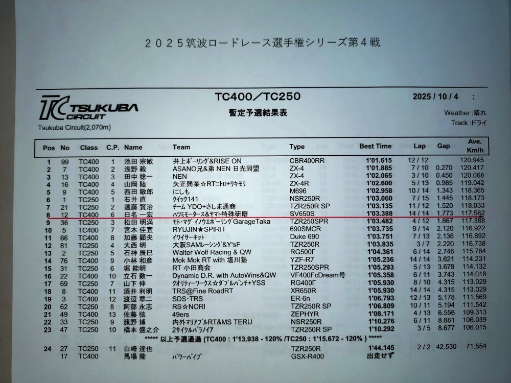 前回(第3戦)の予選よりさらにタイム短縮自己ベスト!!