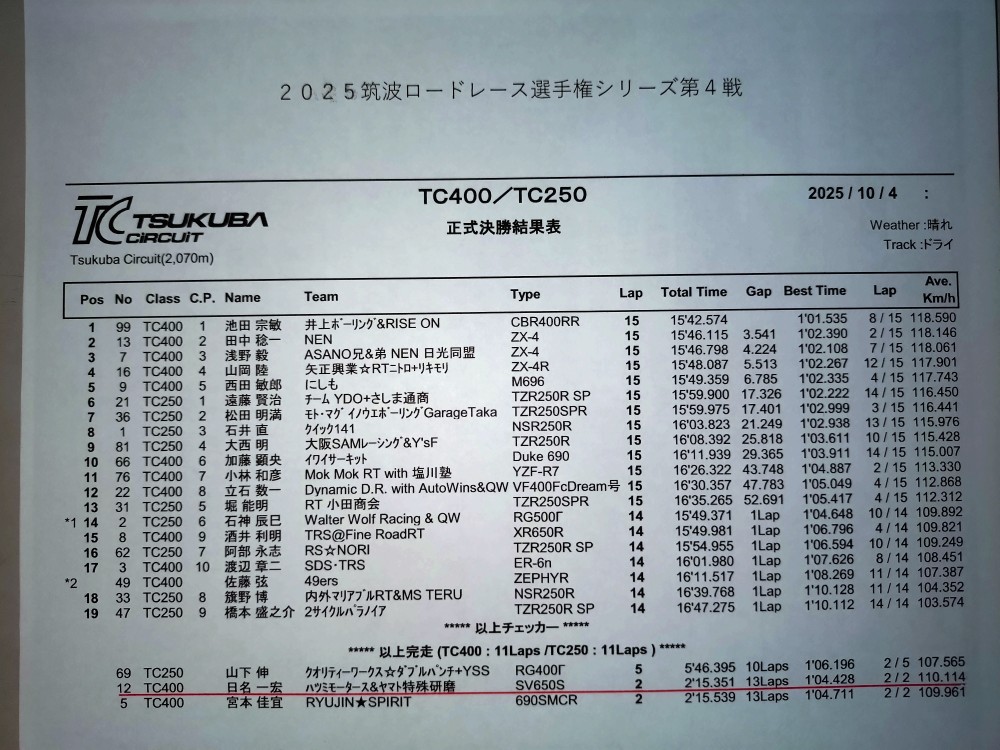 今回は第3戦(第3戦2025/09/06 第4戦:2025/10/04)より少しだけアップグレード。