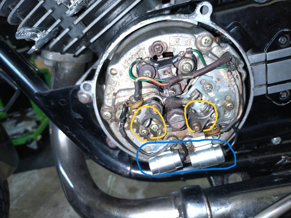 すでにイグニッションコイル、ポイント、コンデンサーの交換を終え、ポイント調整、ブラシ調整も実施。